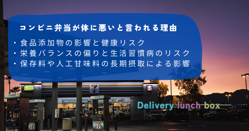 コンビニ弁当は手軽ですが、食品添加物・高カロリー・塩分過多のリスクがあります。