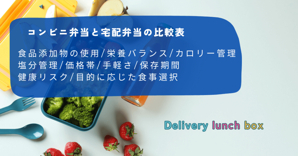 上記の比較表では、コンビニ弁当と宅配弁当の違いを明確に整理しています。