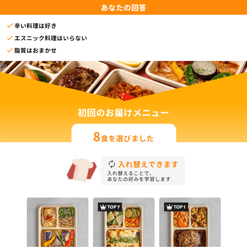 好みの味付や気になる栄養素をもとに、一人ひとりに合った