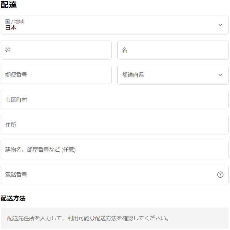 配達、配送方法を選んで次に進みます!