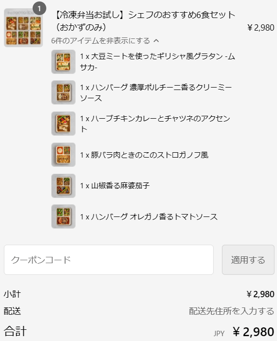 | 最低注文数 | 6食(お試しは5食) |