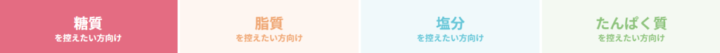 和洋中ともに高レベルの味付け糖質30g・塩分2.5g以下でも美味しい低糖質にしてはしっかりとした味付主菜から副菜まで味が濃く食べ応え抜群和食が美味しく家庭的外食と変わりのない味付韓国屋台の味が手軽に味わえる4つのプランにより味付ボリュームが異なるダシにこだわり味がしっかりしている和・洋・中と飽きの来ない味ダイエット、バルクアップコースで異なる高タンパク、低カロリーの割にしっかり三ツ星基準の栄養バランスをクリアした食材和洋中から塩分、糖質、やわらかい食事塩分ではなく、出汁や香辛料を活かした味付制限食としてはしっかりとした味付和洋中のお弁当が揃い、家庭的で好印象