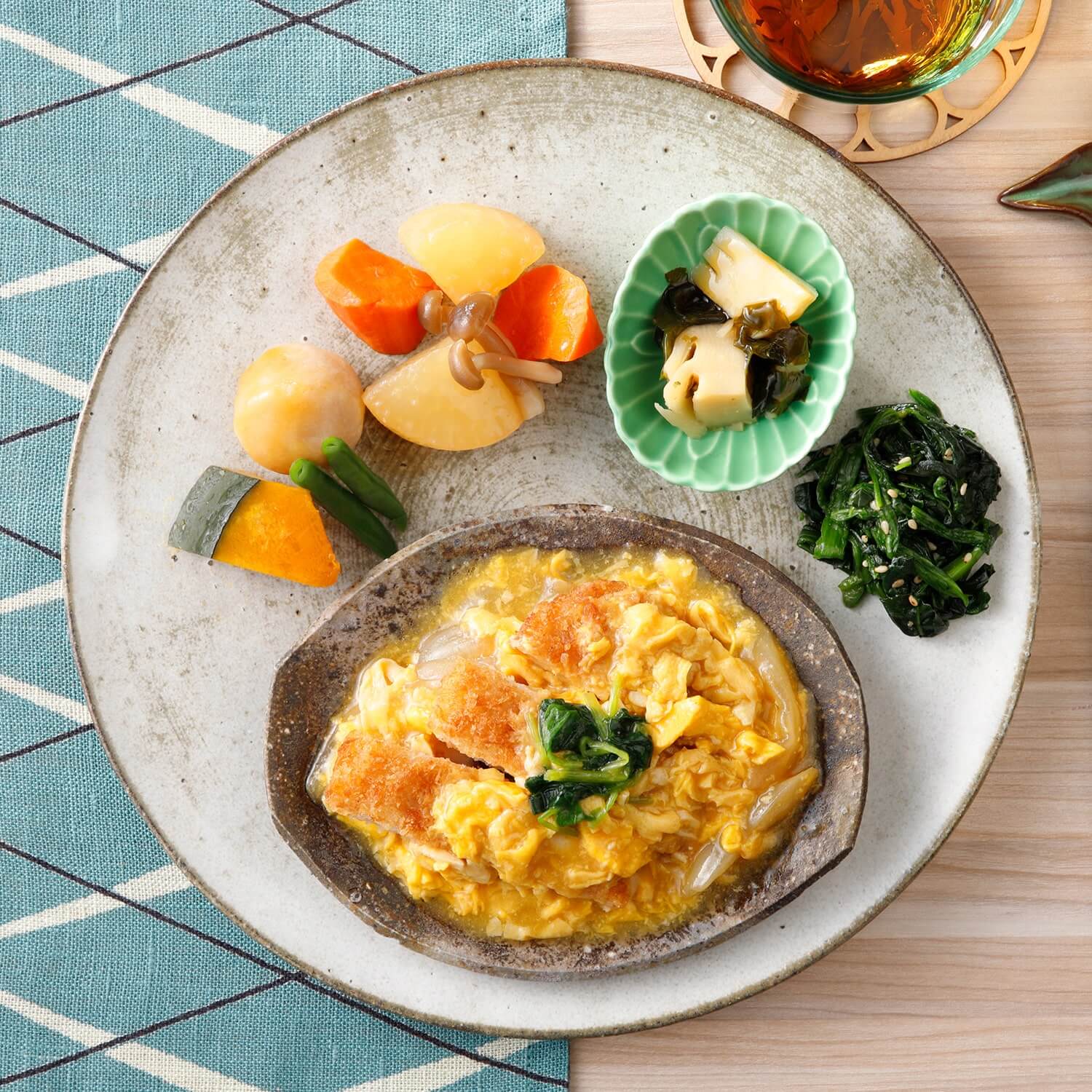 カツの卵とじ風とおかず3種