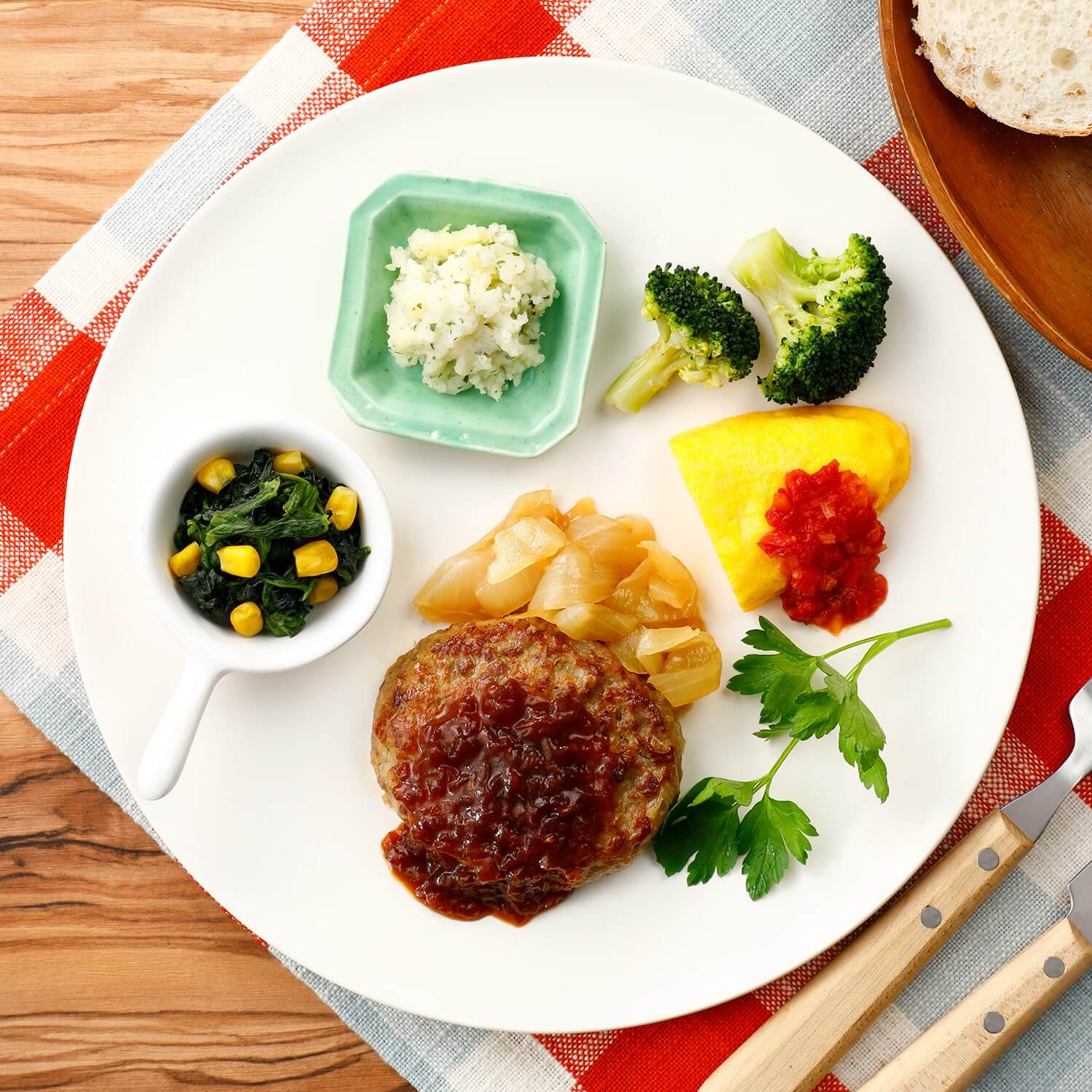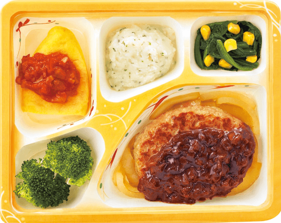 デミグラスソースハンバーグとおかず4種