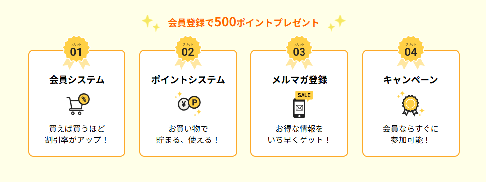 まずは無料の会員登録を済ませましょう。いきなり500円分のポイントが貰えます。