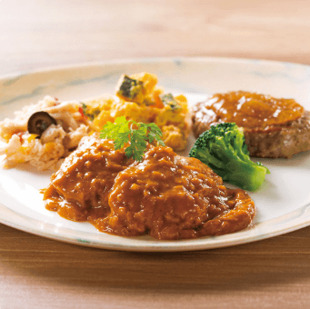 • デミグラスソースハンバーグたまねぎのソテー