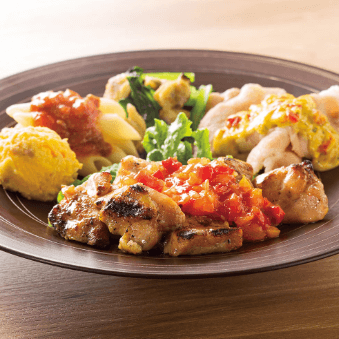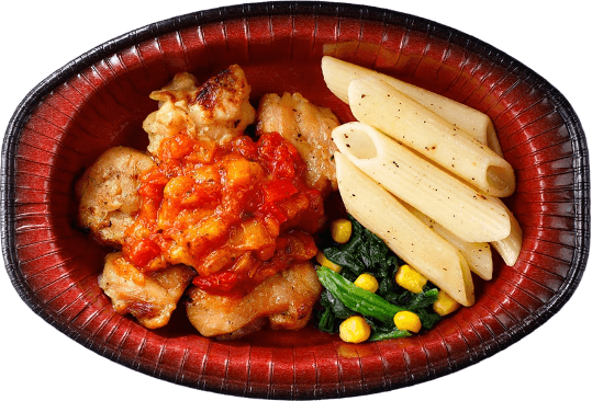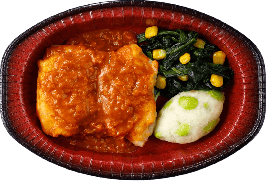 トマトソースオムレツは冷凍感はなく、ふっくらとした仕上がりでご飯との相性も抜群です。