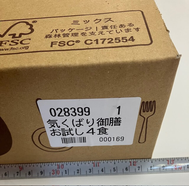 ニチレイフーズダイレクトの「気くばり御膳お試し4食」セットが冷凍で届きました。思ったより段ボールはコンパクトで、厚みは10㎝程度。