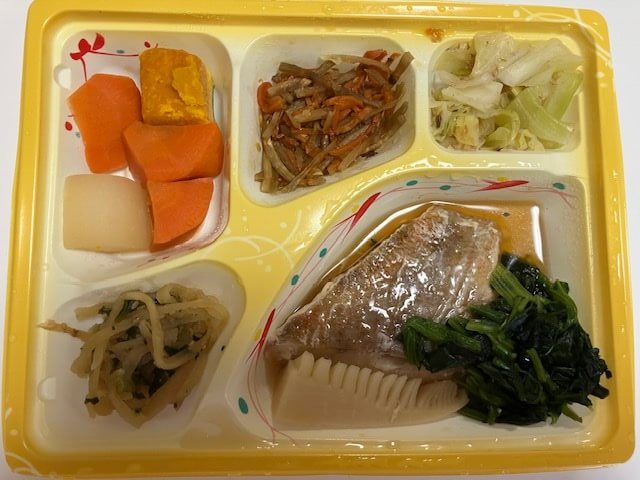 主菜の赤魚は骨の処理があり食べやすく、味が染みていて美味しかったです。赤魚の評価は高いのですが、副菜の野菜の炊き合わせで評価を下げています。