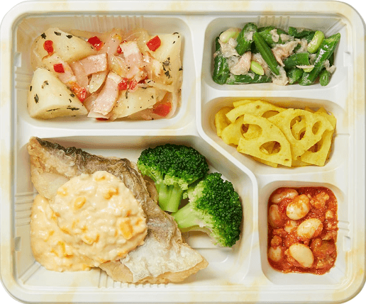 考えられた献立でお弁当は1つずつ選べます。苦手な食材は回避