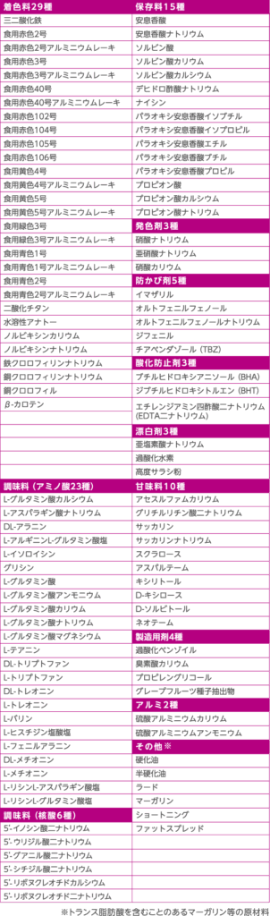 添加物早見表を作成しています♪
