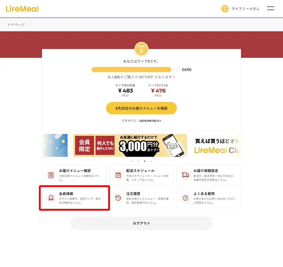 ライフミールのClub制度では、購入額に応じてランクがアップし、割引率が向上します。