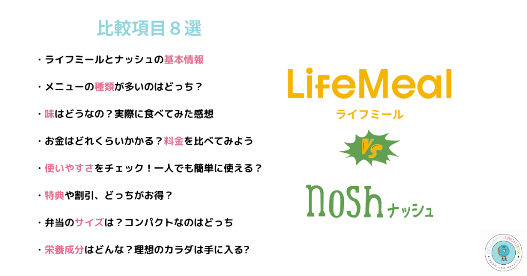 ライフミールとナッシュを7つの項目で比較した結果、