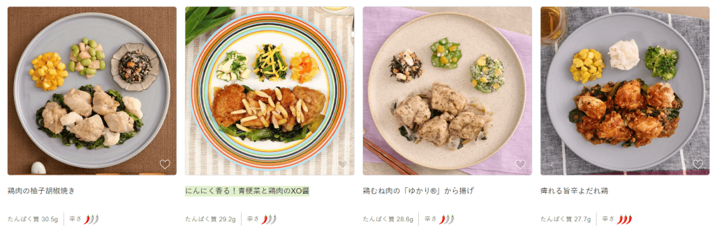 noshは、チキンやハンバーグなど、高たんぱく質のメニューが豊富に揃っているので、しっかりとたんぱく質を補充することができます。
