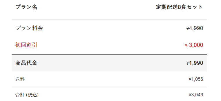 10食プランを定期購入の場合、18回目の注文で1食499円(税込)で食べられます。