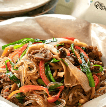 チャプチェは、日本の料理にはない独特の甘辛い味付けが魅力で、野菜や牛肉と一緒に炒めた一品が人気です。