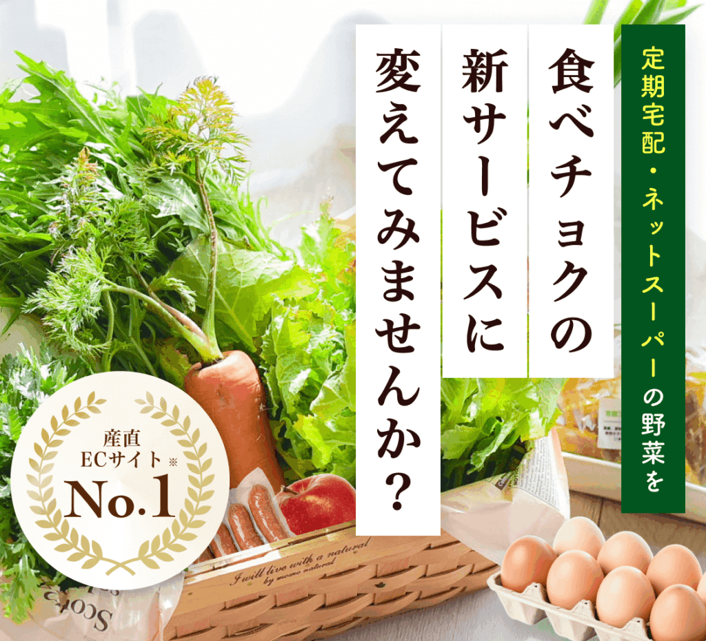 「食べチョク ドットミィ」は、産地直送の野菜・果物・卵などを1袋から選べるネットスーパー型定期便です。