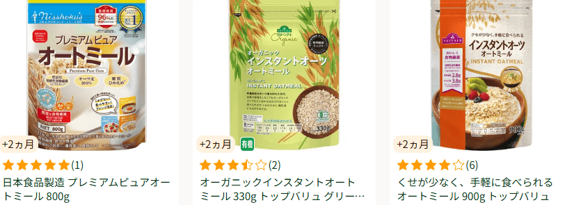 具体例として、大容量タイプのオートミールやブランは一食あたりの価格が安く、毎日使いやすい傾向があります。グラノーラは価格帯に幅があるため、原材料と価格を見比べることが重要です。コスパを意識することで、無理なく継続できます。