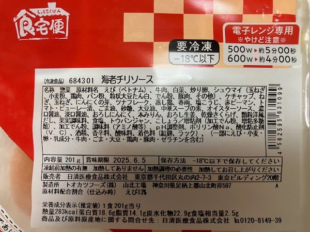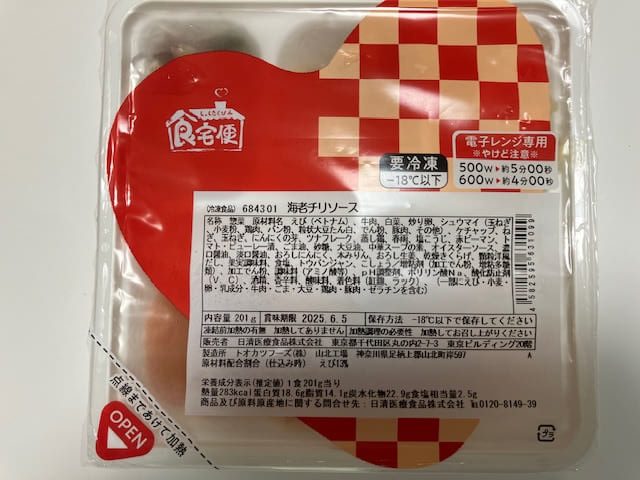 | 海老チリソース | 内容量 | カロリー | たんぱく質 | 脂質 | 炭水化物 | 食塩相当量 |