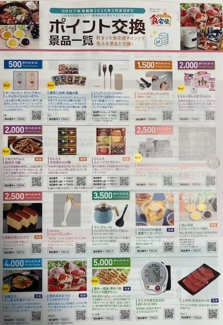 食宅便ポイントはポイントが貯まるとポイントに応じた景品と交換できます♪