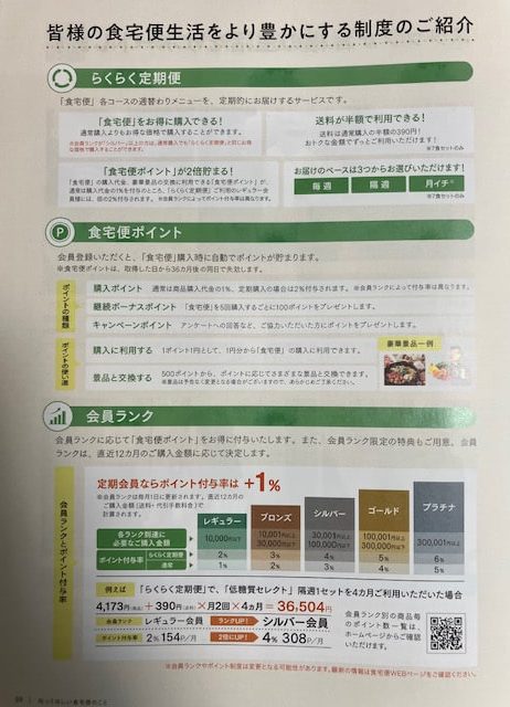 | 食宅便ポイントが2倍貯まる! | 通常購入1%付与 定期便は倍の2%付与 | |