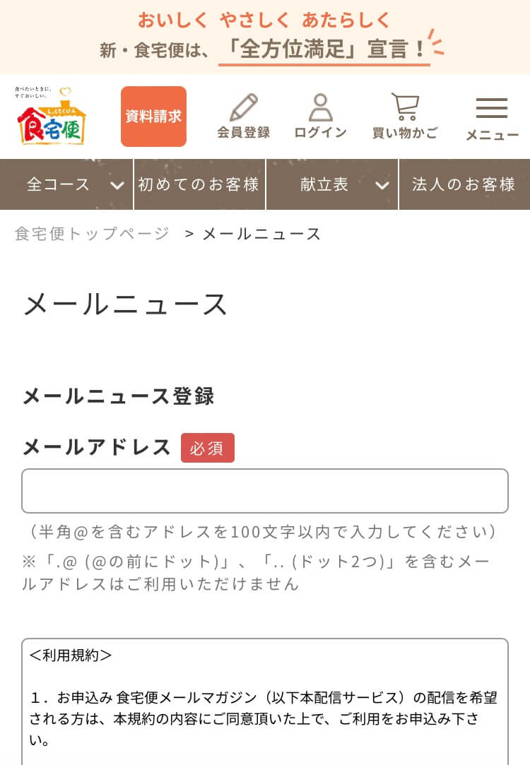 食宅便のメールマガジンの配信を希望する場合はメールアドレス必須