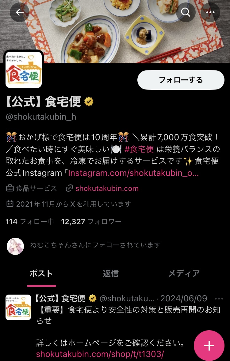 エックス(旧ツイッターもも食宅便の最新情報が届きます♪