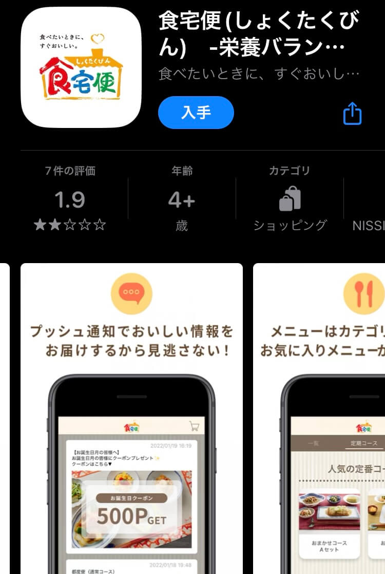 スマホに食宅便のアプリを入れておくと、いつでも簡単に注文できます♪