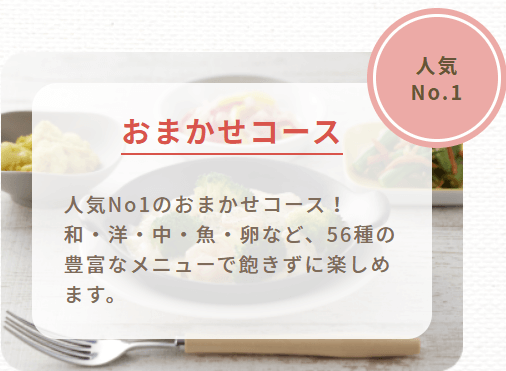 通常メニューから介護食まで揃っています。コースによって異なりますが、管理栄養士設計で塩分や食材数にこだわりがあります。