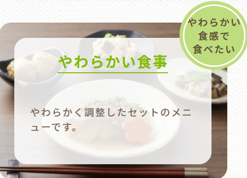 食事制限が必要な方や健康維持を目的とする方に向けたメニューが多く、カロリーや塩分を管理しやすい食事が提供されています。