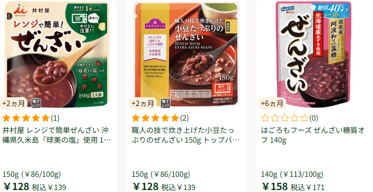 さらに、2025年版では「糖質オフぜんざい」も登場しました。カロリーを抑えながら甘みとコクを両立しており、健康志向の方にも人気です。